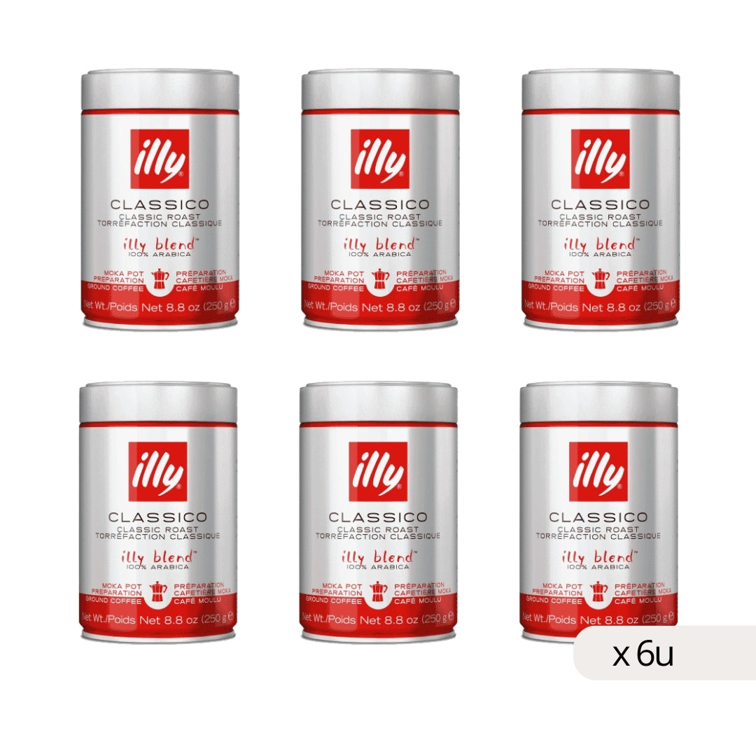 ILLY Ground Coffee per Moka 100% Arabica 250g, 6 units per box