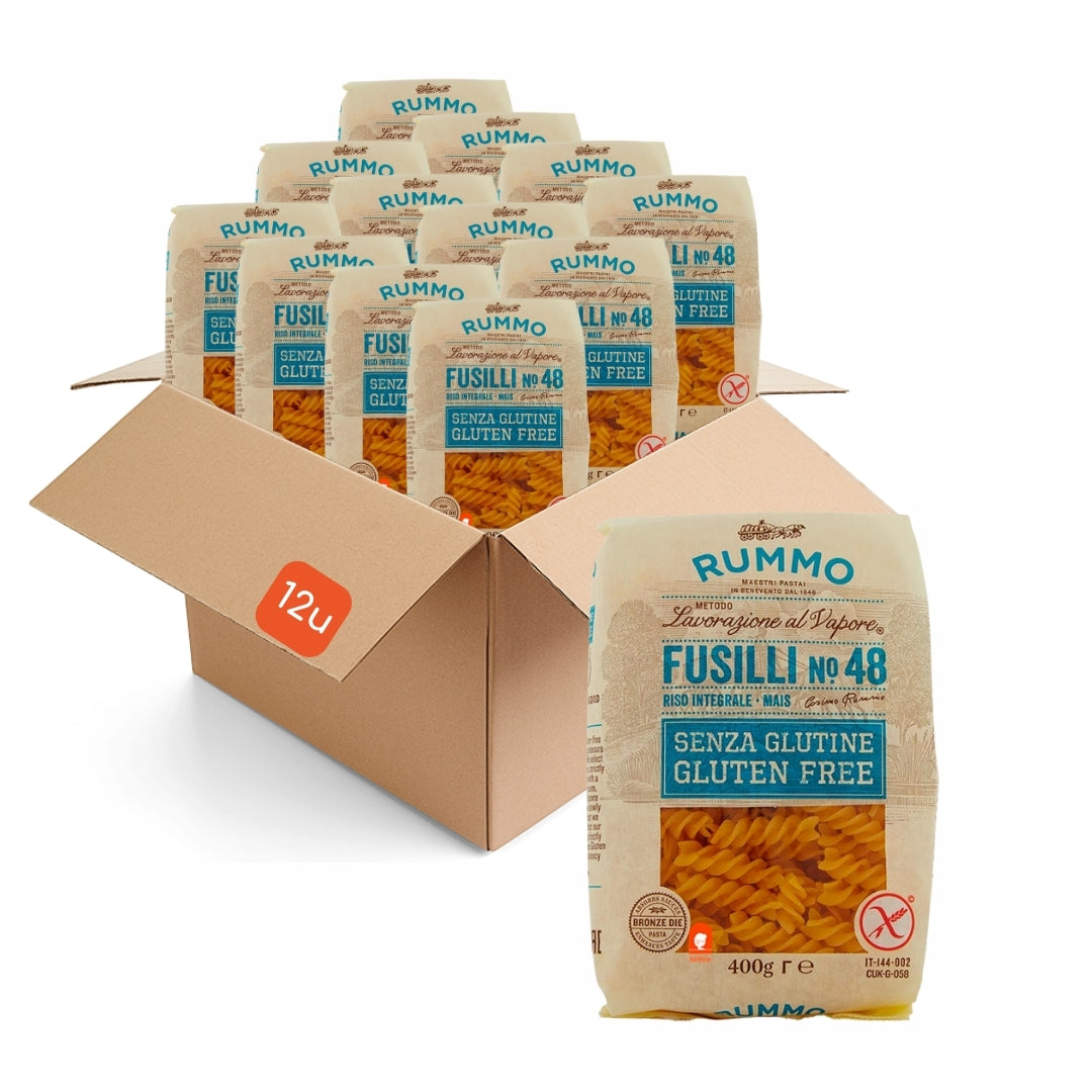Rummo Fusilli n.48 gluten-free Italian pasta, with brown rice flour and corn, 400 gr, 12 units per box