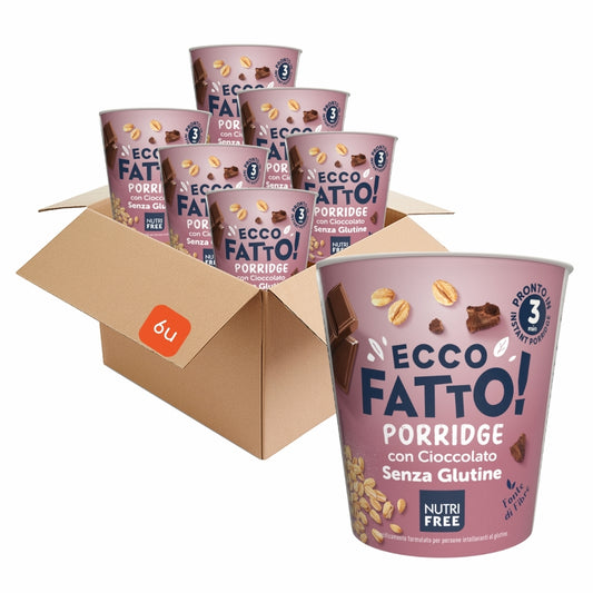 Features :If you want a rich breakfast but you're short on time, our Ecco Fatto Porridge! Instant chocolate is the perfect solution for you! Choose convenience without compromising on taste and quality. Packaged in practical single-dose cups , our porridge is ready in just a few moments . Simply add hot water, mix, wait 3 minutes and enjoy a delicious and nutritious breakfast wherever you are. Ideal for those who have a hectic life and need a quick energy boost without giving up goodness and quality. . PS: also excellent with vegetable drinks.