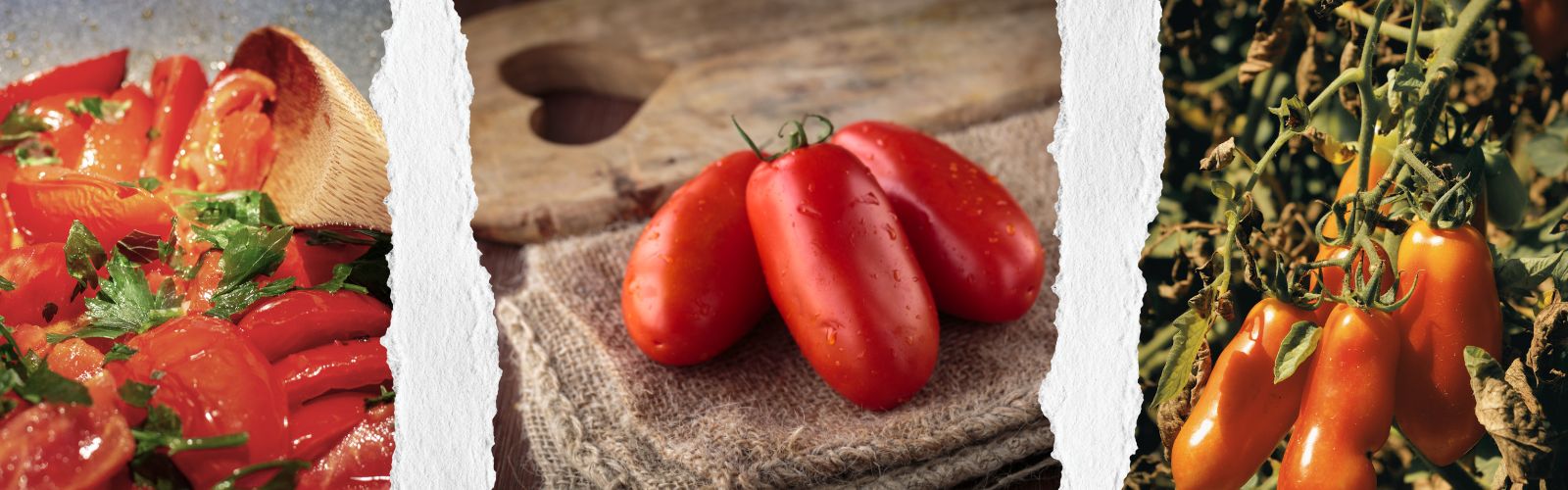 Sapore: Il pomodoro San Marzano ha un sapore dolcemente acido, con una bassa acidità rispetto ad altre varietà di pomodoro. Ciò lo rende ideale per l'uso nelle salse, poiché il suo sapore si concentra durante la cottura. Ha una consistenza carnosa, con pochi semi e un alto contenuto di polpa, il che lo rende perfetto per fare puree e salse dense.