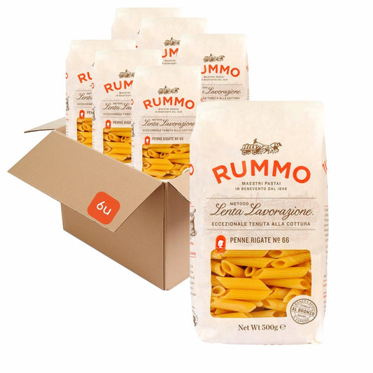 Rummo Penne Rigate nº 66 Massa italiana, 500 gr, 6 unidades por caixa