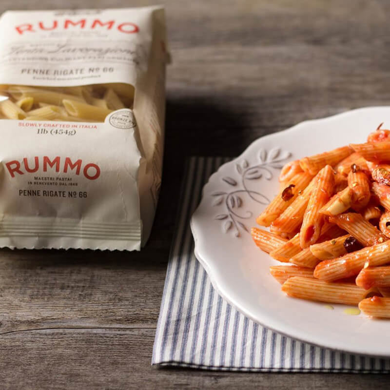 Características : A massa Penne Rigate n 66 RUMMO é uma delícia italiana elaborada especificamente com sêmola de trigo duro e ingredientes de qualidade que garantem um sabor incomparável em suas receitas. Método de produção lenta. Ideal para incluir em seus pratos quentes de massa junto com deliciosos molhos.